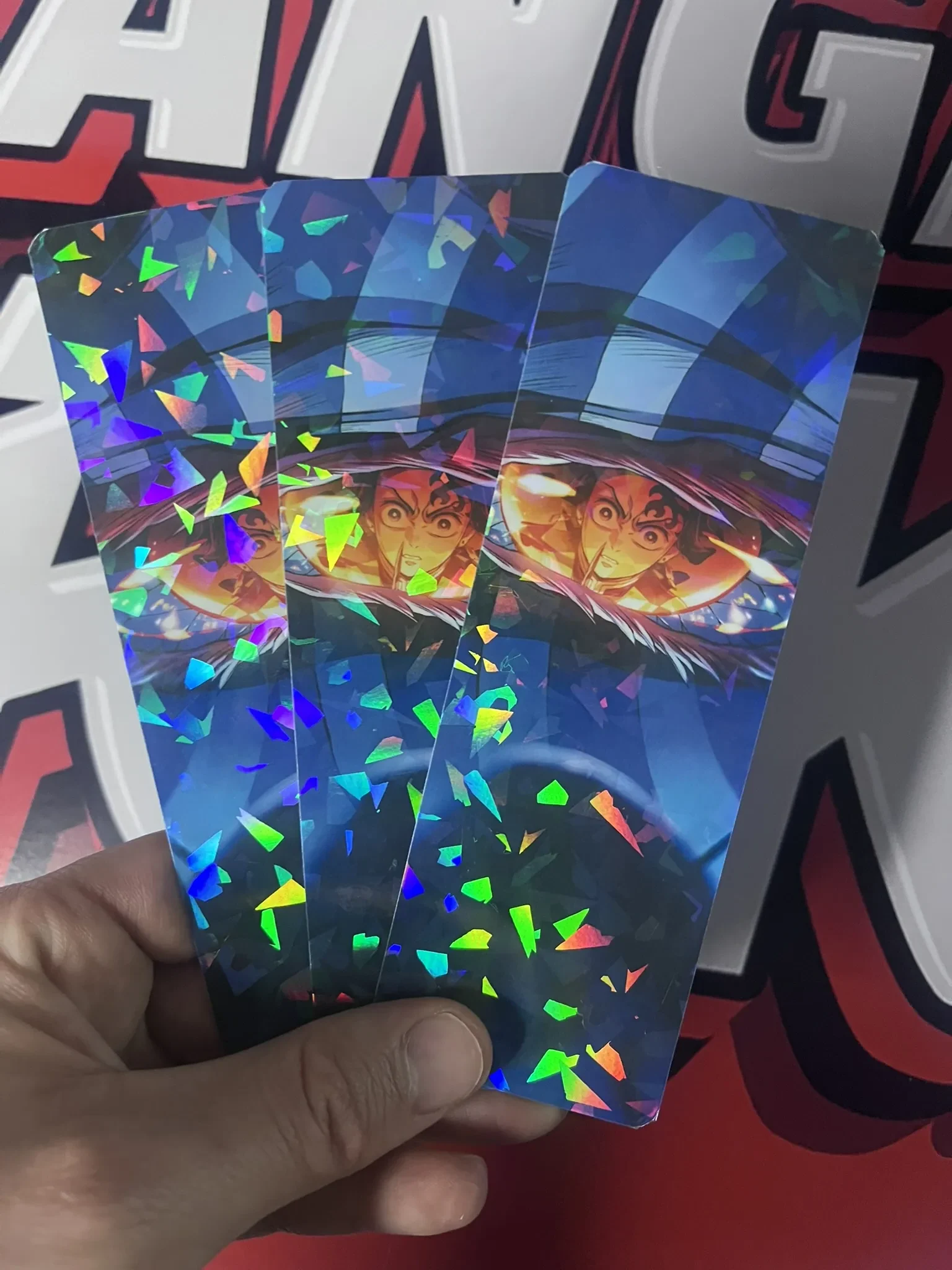 Marca página holográfico de Kimetsu no Yaiba – diseño Akaza y Tanjiro.
