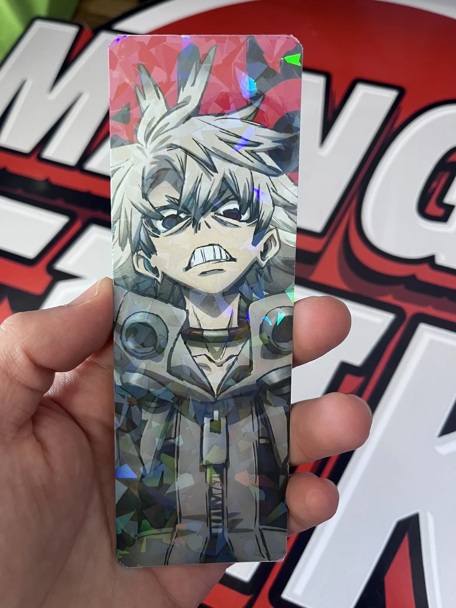 Marcapáginas holográfico inspirado en Gachiakuta, con un diseño urbano y lleno de detalles. Exclusivo de Mangas Friki, misma imagen por ambos reversos.